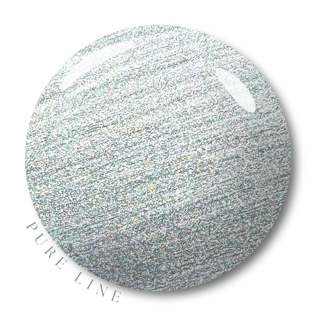 A frosty white-silver with cool, icy blue-green reflect. Highly luminous with a sheer base and intense micro-glitter finish.