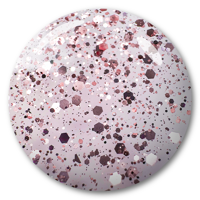 Create a fashionable and extra-durable mani with Rose gold glitter in a smooth velvet finish using the great Matte Rose Art Flake Top Coat by Luxe Gel Professional!